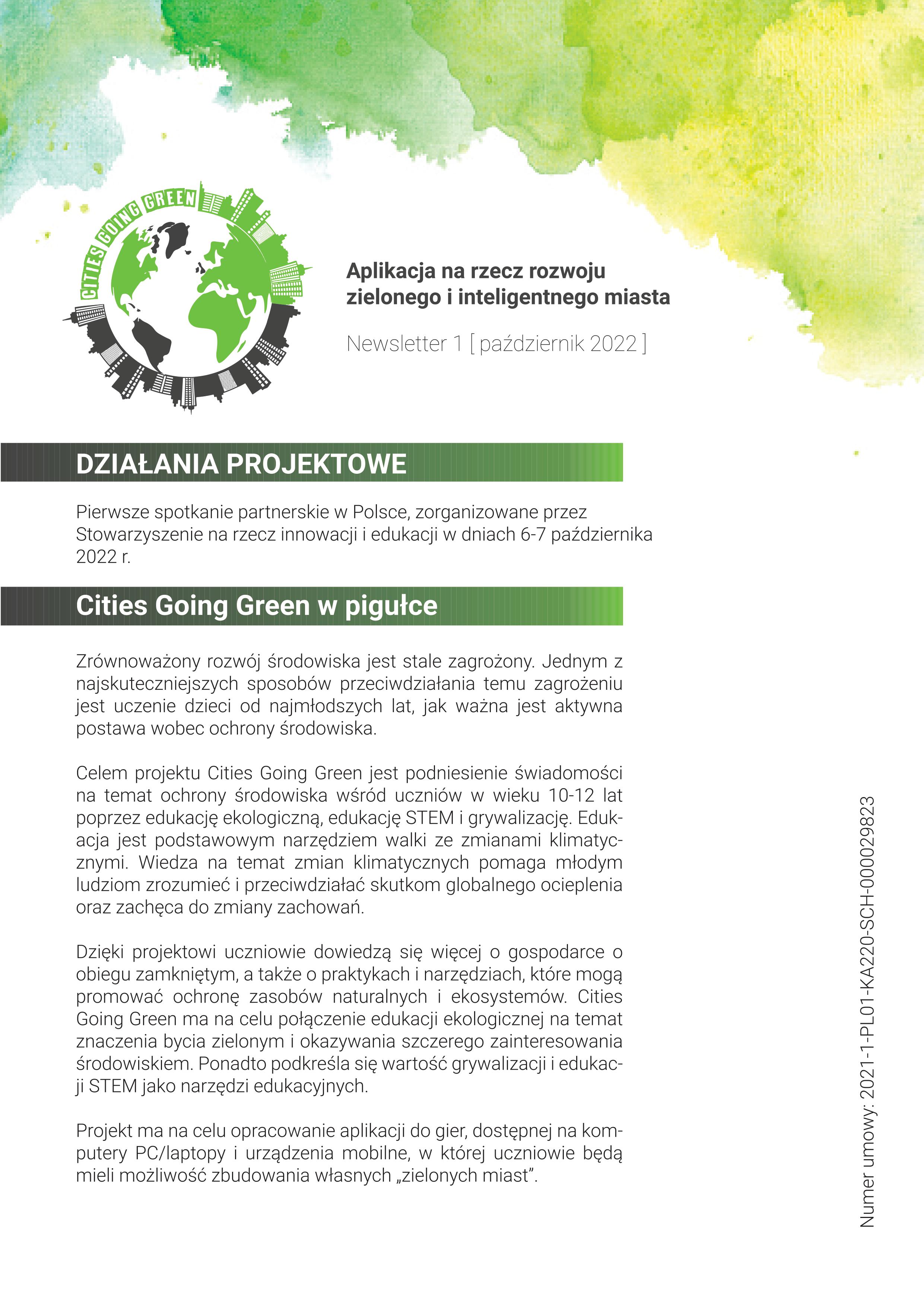 Miło nam poinformować, że Publiczna Szkoła Podstawowa nr 1 w Grójcu została partnerem w projekcie edukacyjnym programu Erasmus+. ,,Application for the development of a Green and Smart city”, akronim CitiesGoingGREEN, numer projektu 2021-1-PL01-KA220-SCH-000029823.