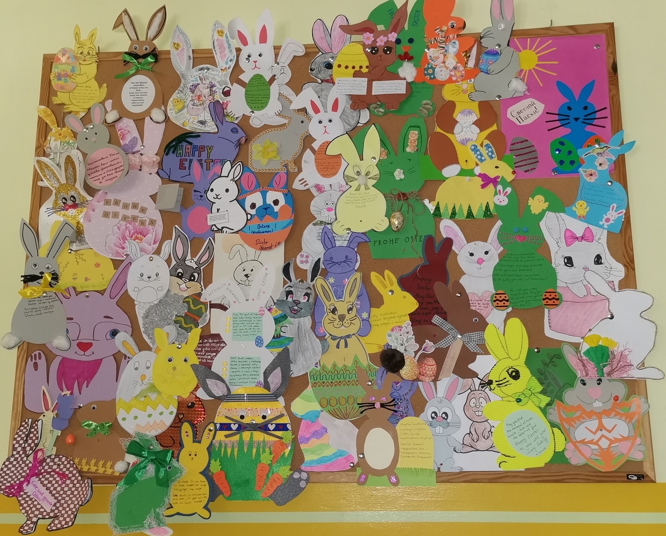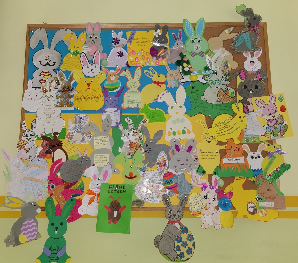 Uczniowie klas 4-8 z wielkim zapałem wzięli udział w świątecznym projekcie „Kartka Wielkanocna”. Tablice na naszych szkolnych korytarzach wypełniły się po brzegi wielkanocnymi zajączkami niosącymi moc świątecznych życzeń w nauczanych w naszej szkole językach obcych tj. angielskim, niemieckim i rosyjskim. Dziękujemy uczniom za ich zaangażowanie i kreatywność. Z okazji zbliżających się Świąt Wielkanocnych nauczyciele języków obcych składają najserdeczniejsze życzenia: spokoju, zdrowia i radości.