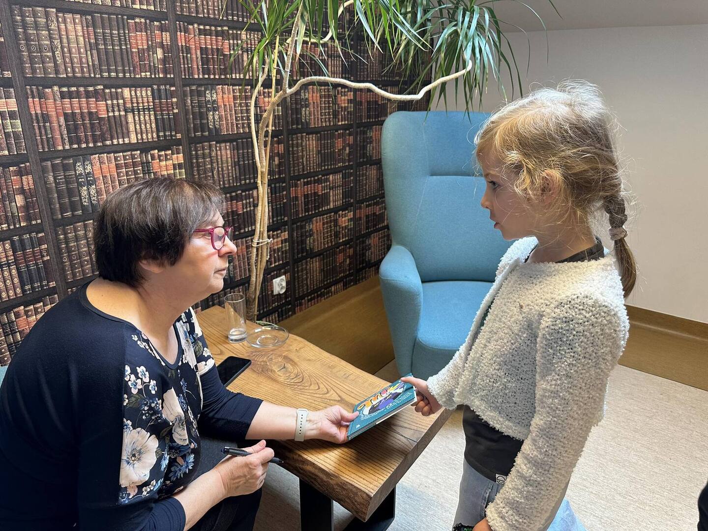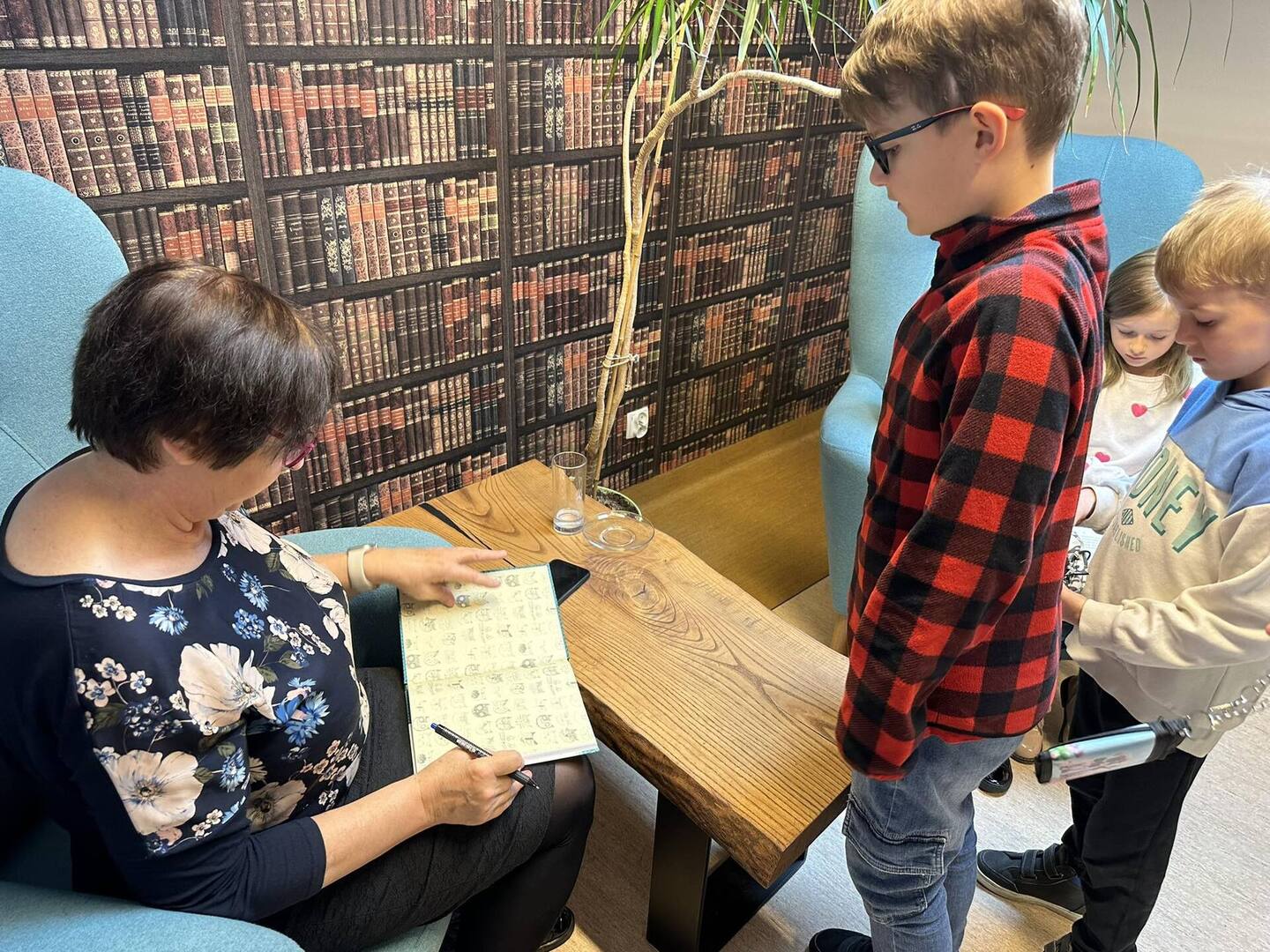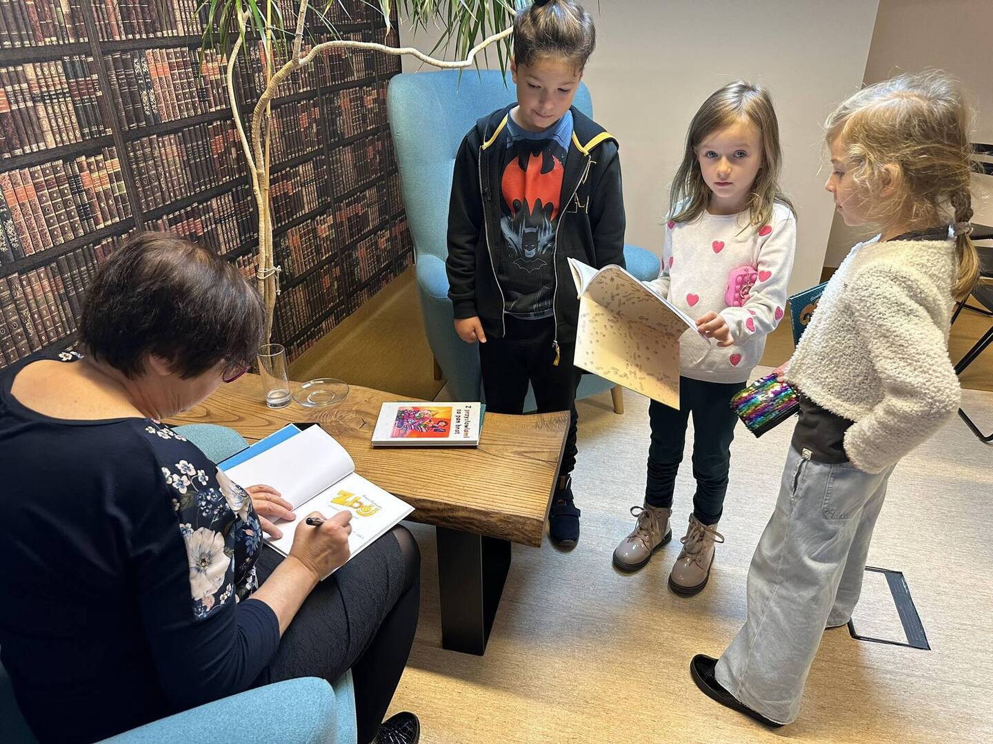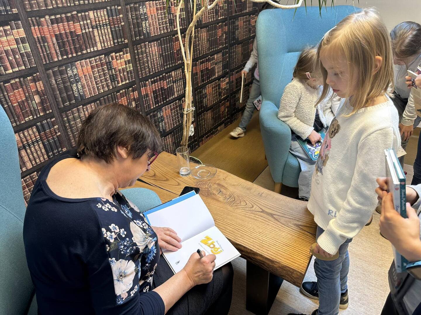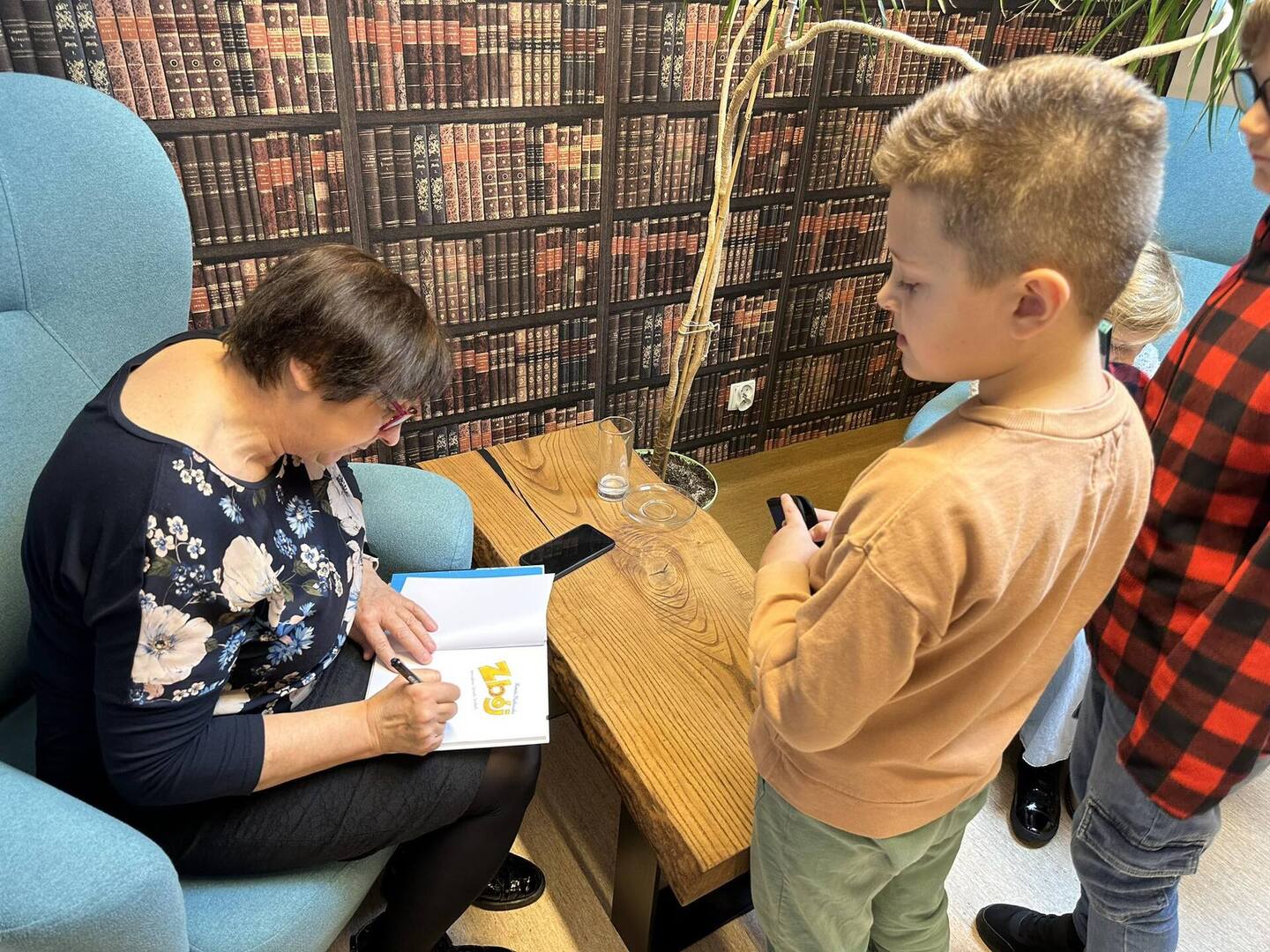 8 listopada 2023r. odbyło się niezwykłe spotkanie klasy 1A i 1E w Bibliotece Publicznej w Grójcu z autorką książek dla dzieci Panią Renatą Piątkowską oraz lektorką Panią Malwiną Kożurno. Spotkanie było oparte na pozycjach książkowych: „Najwierniejsi przyjaciele. Niezwykłe psie historie”, „Zbój” i „Mruk”. Pani Renata Piątkowska w bardzo ciekawy i humorystyczny sposób opowiadała dzieciom prawdziwe historie o psach, koniach i kotach, które dokonały czegoś niezwykłego. Opowiadania autorki przeplatane były czytaniem fragmentów utworów przez znakomitą lektorkę panią Malwinę, która oczarowała wszystkich doskonałą dykcją i niepowtarzalną interpretacją czytanych fragmentów . Potem była możliwość zakupu książek wraz z autografem autorki. Bardzo dziękujemy Bibliotece Publicznej w Grójcu za organizację spotkania. Było wzruszająco i humorystycznie!