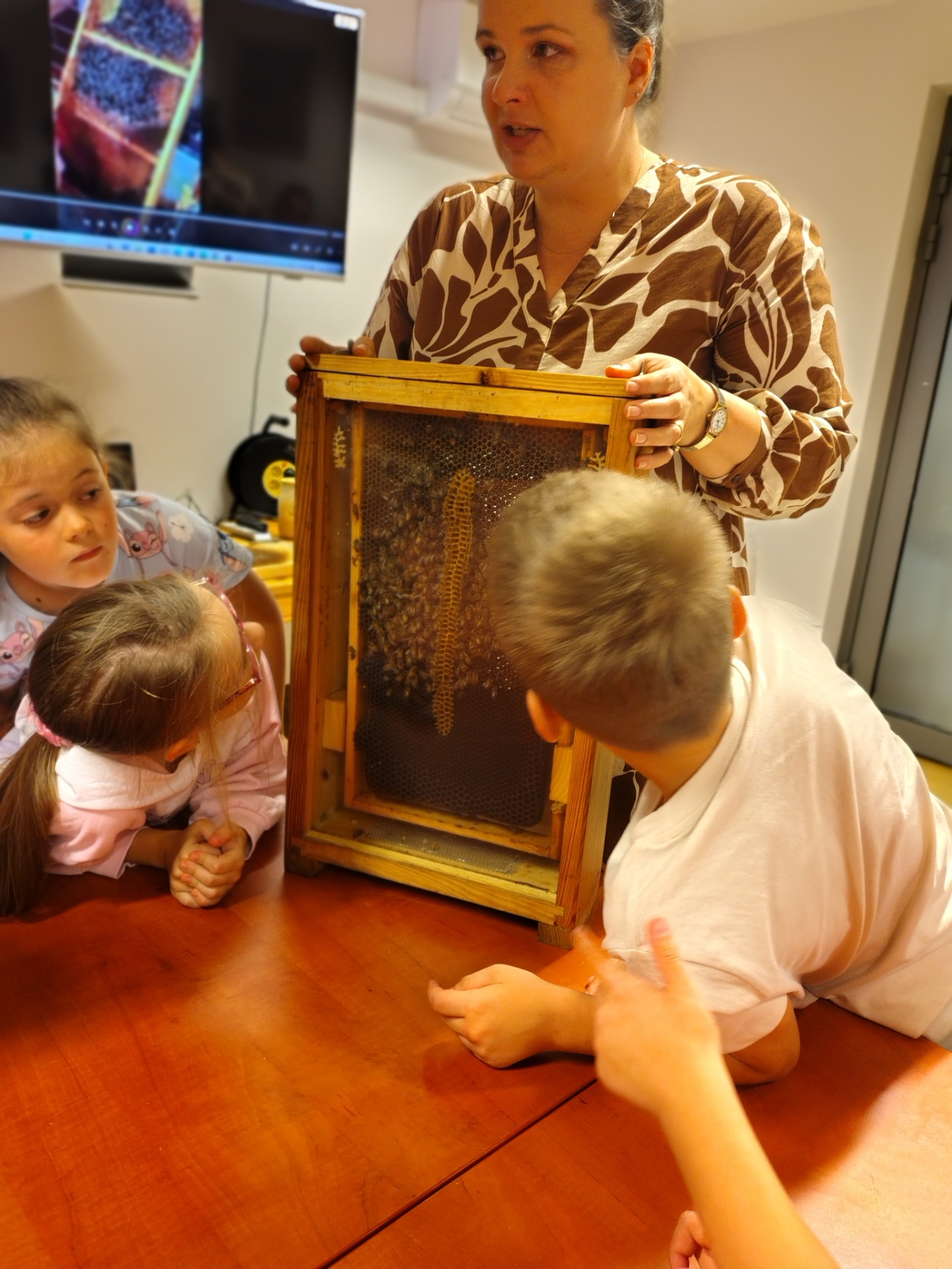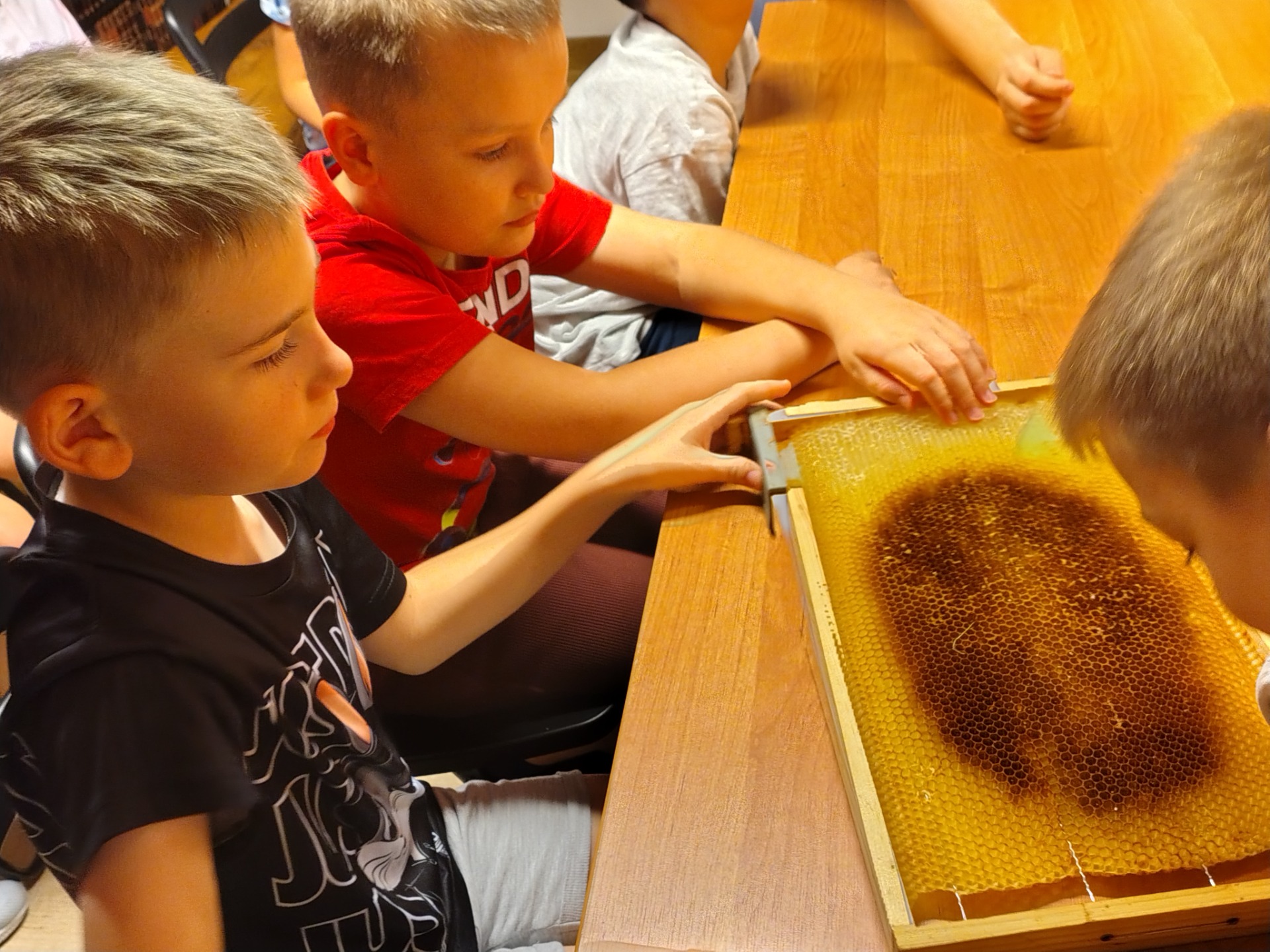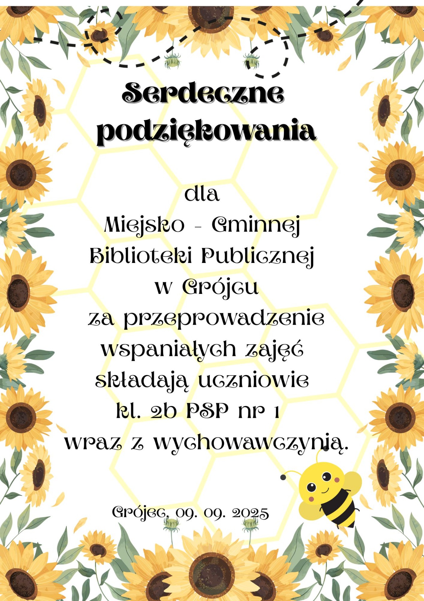 9 września 2025 roku uczniowie klasy 2b uczestniczyli w wyjątkowej lekcji o pszczołach. Zdobyli wiedzę o budowie i funkcjonowaniu tych niezwykłych owadów, o tym jak bardzo są nam potrzebne i pożyteczne. Jaka to była frajda móc zobaczyć pszczoły tak blisko! A wszystko to w przesympatycznej atmosferze i dzięki uprzejmości Miejsko - Gminnej Biblioteki Publicznej w Grójcu. Dziękujemy!