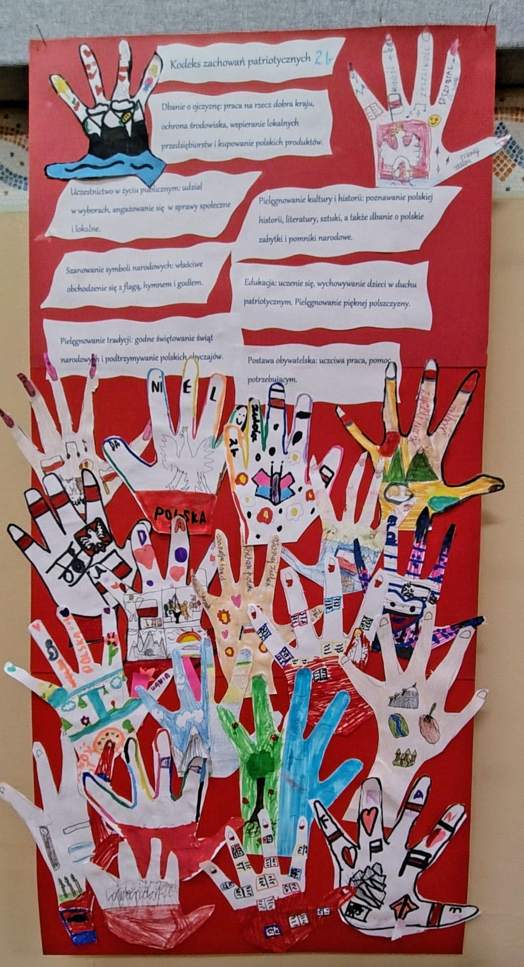 W minionym listopadzie uczniowie klas 2b i 2c uczestniczyli w projekcie "Tydzień patriotyczny". Główne cele przedsięwzięcia to rozbudzenie zainteresowania historią Polski i budowanie poczucia przynależności narodowej oraz lokalnej. Dzieci wspólnie opracowały kodeks zachowań patriotycznych, rozmawiały o tym, za co możemy kochać ojczyznę, stworzyły interesujące prace plastyczne, wzięły udział w dniu mody biało-czerwonej. Uczniowie odbyli także wyjątkowy spacer śladami przeszłości, podczas którego rozwiązywali łamigłówki, układali tematyczne puzzle oraz wykonywali zadania ruchowe. Nie zabrakło powagi i szacunku, ale nie obyło się bez elementów zabawy. Wszystko po to, aby temat patriotyzmu przedstawić w formie bliskiej dzieciom, wywołać zaangażowanie i pozostawić miłe wspomnienia.