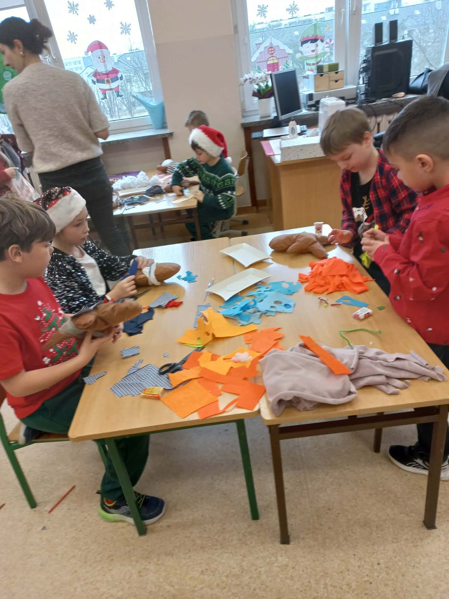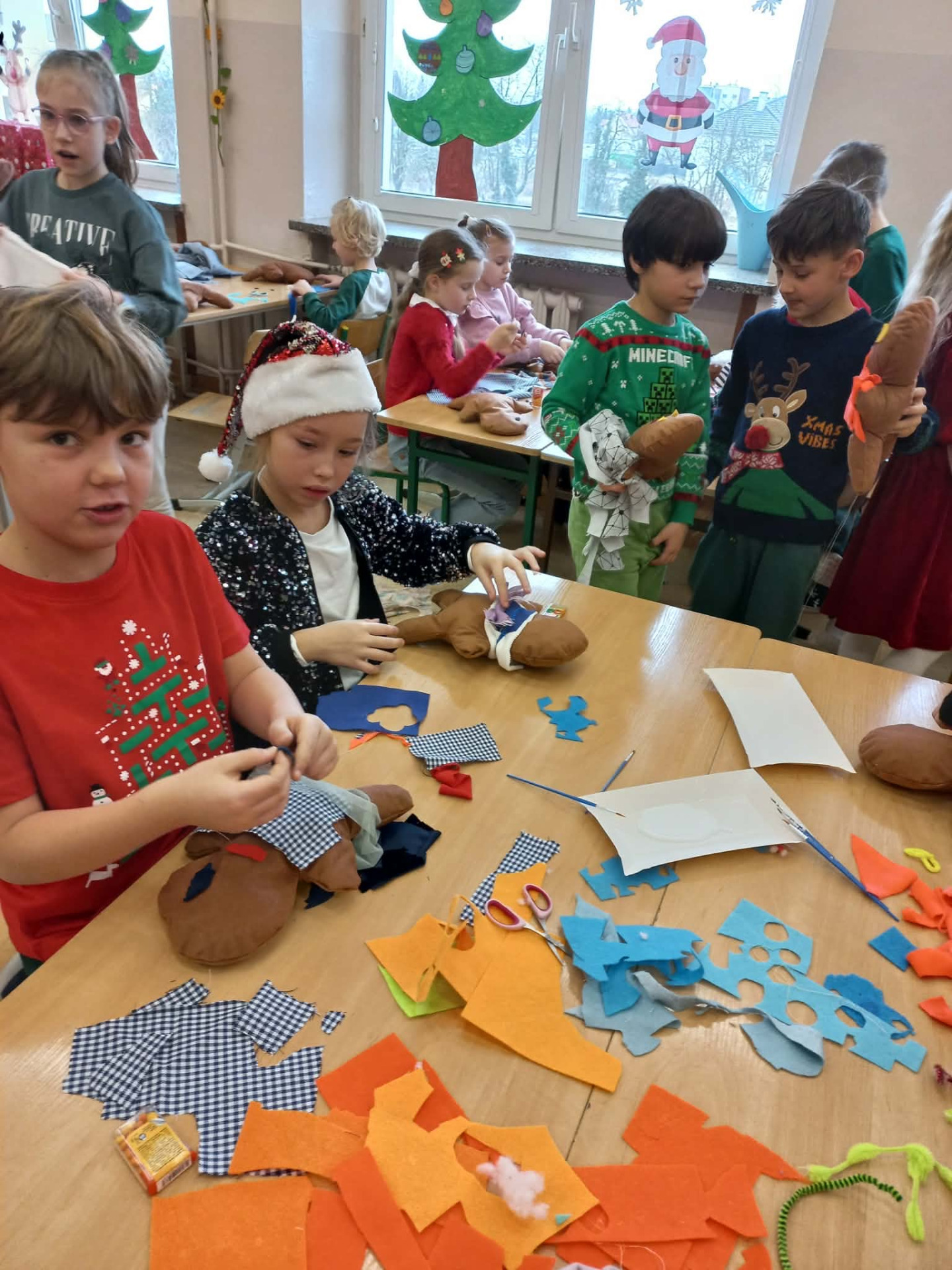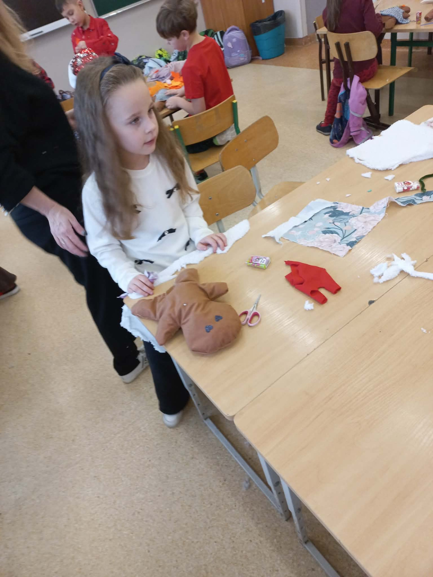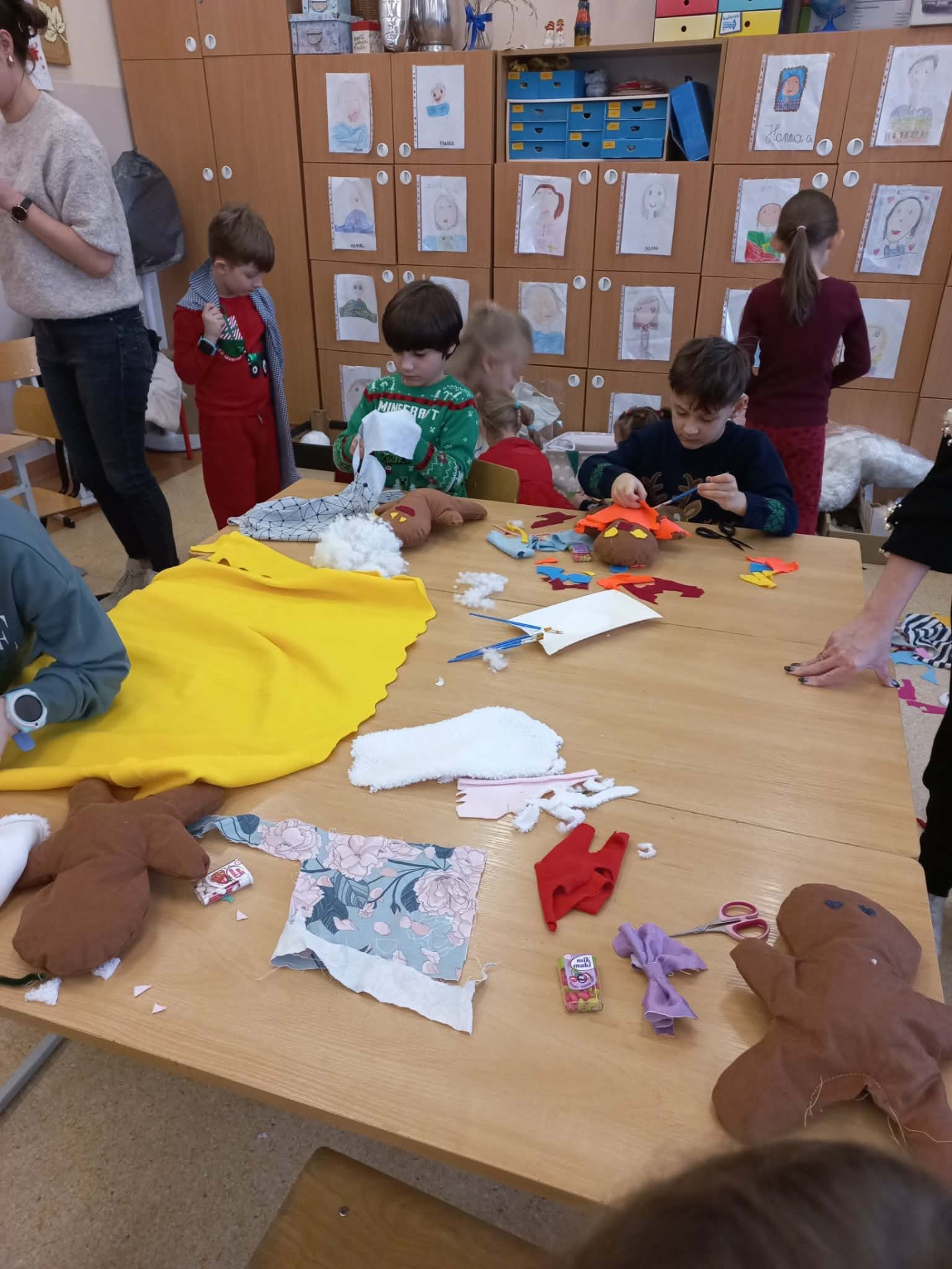 W klasie 1a świętowaliśmy Mikołajki w wyjątkowo kreatywny sposób. Z tej okazji odbyły się warsztaty. Podczas zajęć dzieci z ogromnym zaangażowaniem i radością tworzyły przytulanki – Cisteczkowe ludki.